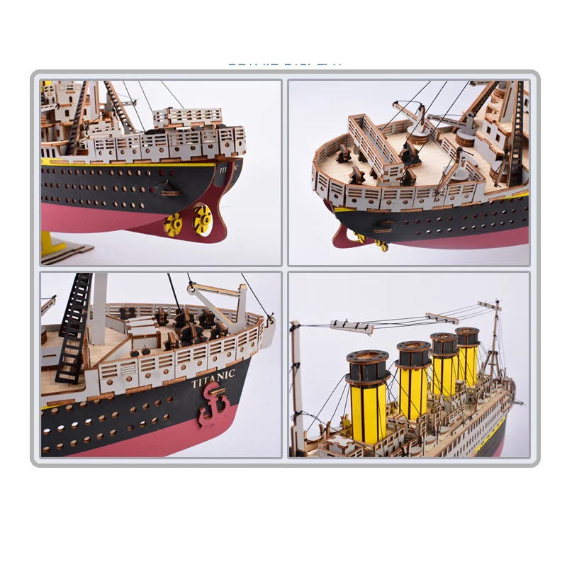 Recrea la majestuosidad del Titanic con esta maqueta de madera. Con piezas precisas y montaje accesible, es un proyecto inolvidable.